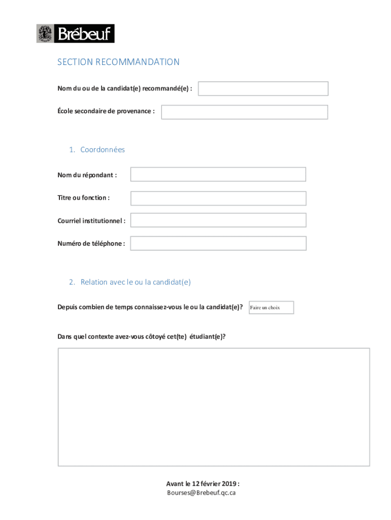 Not Du of DE la candidate(e) recommend(e) :