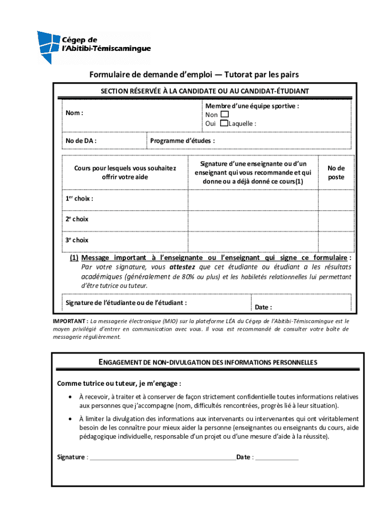 Formula ire DE demand employ Tutor at par less pairs SECTION SERVE LA CANDIDATE OF AU CANDIDATTUDIANT Member dune quite sportive : Non OUI LaBelle :Not :No de DA :Program études :Course pour sequels