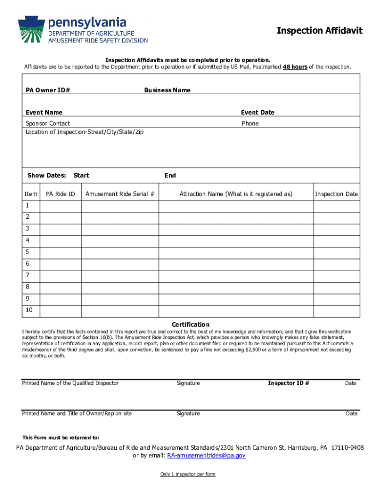 AccidenInspection AffidavitInspection Affidavits must be completed prior to operation.