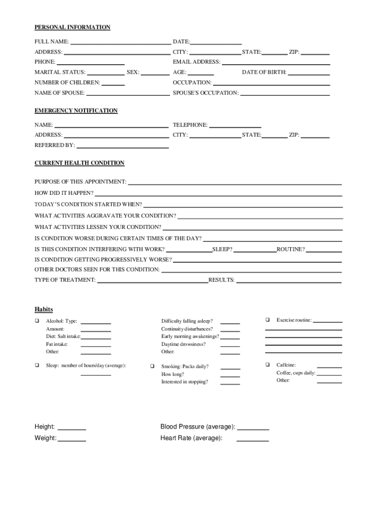 FULL NAME:DATE:ADDRESS:CITY:PHONE:EMAIL ADDRESS:MARITAL STATUS:SEX:STATE:AGE:ZIP:DATE OF BIRTH:NUMBER OF CHILDREN:OCCUPATION:NAME OF SPOUSE:SPOUSE\'S OCCUPATION:EMERGENCY NOTIFICATION