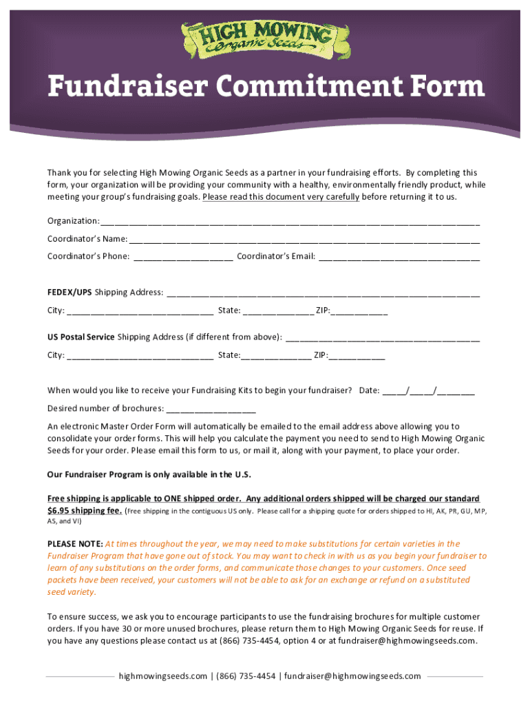 Get the free Organic Seed Fundraiser Commitment Form - High Mowing School