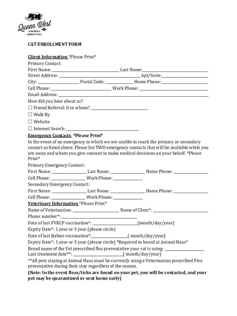 CAT ENROLLMENT FORM Client Information *Please Print* Primary Contact: First Name: Last Name: Street Address: Apt/Suite: City: Postal Code: Home Phone: Cell Phone: Work Phone: Email Address: How did