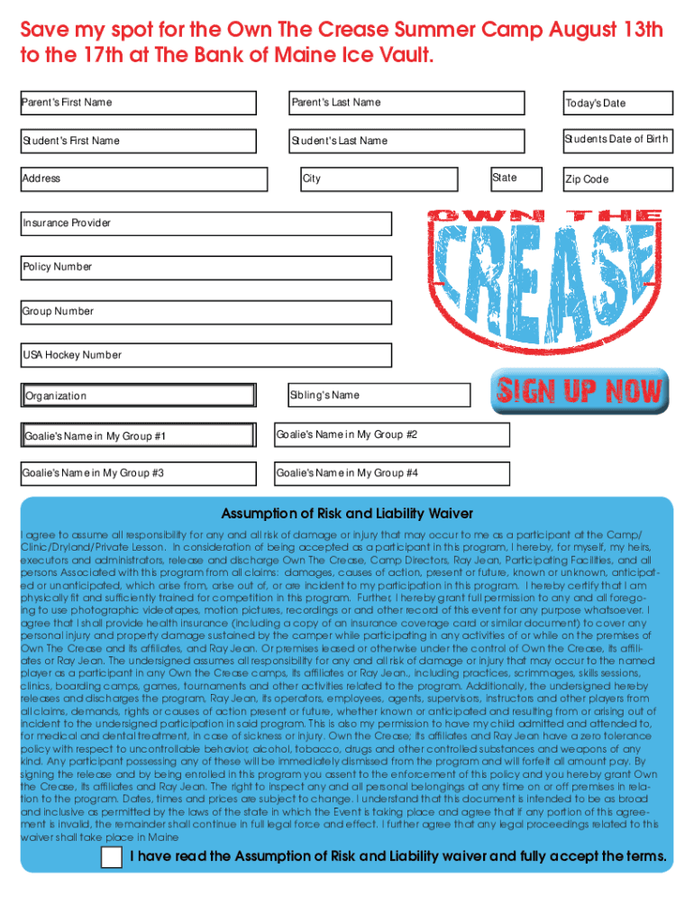 Save my spot for the Own The Crease Summer Camp August 13th