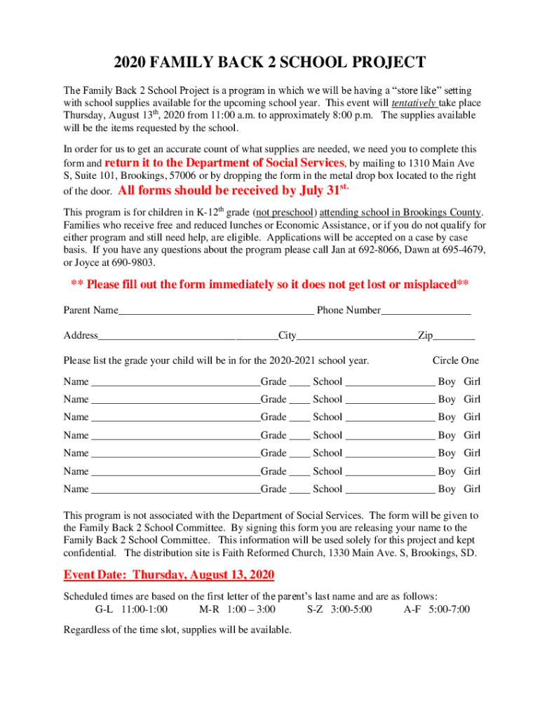 Get the free The Family Back 2 School Project is a program in which we will be having a store lik...