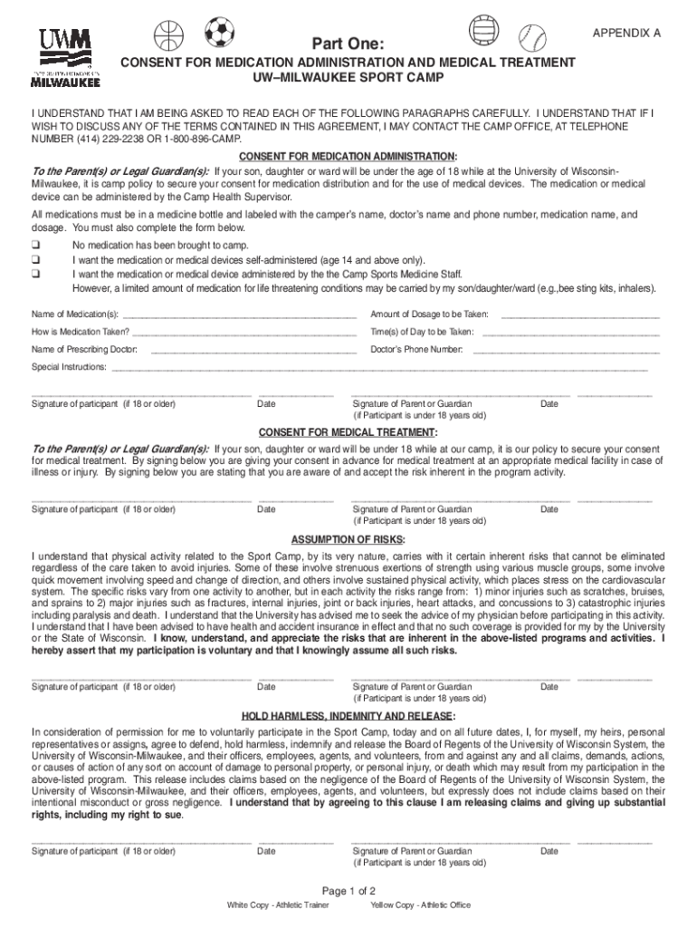Apart One:Appendix CONSENT FOR MEDICATION ADMINISTRATION AND MEDICAL TREATMENT