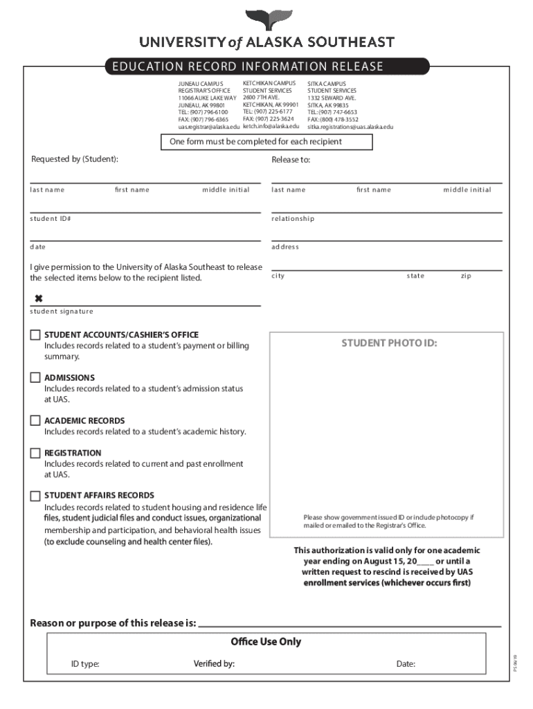 Specify the purpose of the release of your educational records and indicate the individuals or entities to whom the information should be disclosed. Be sure to use precise and concise language.
