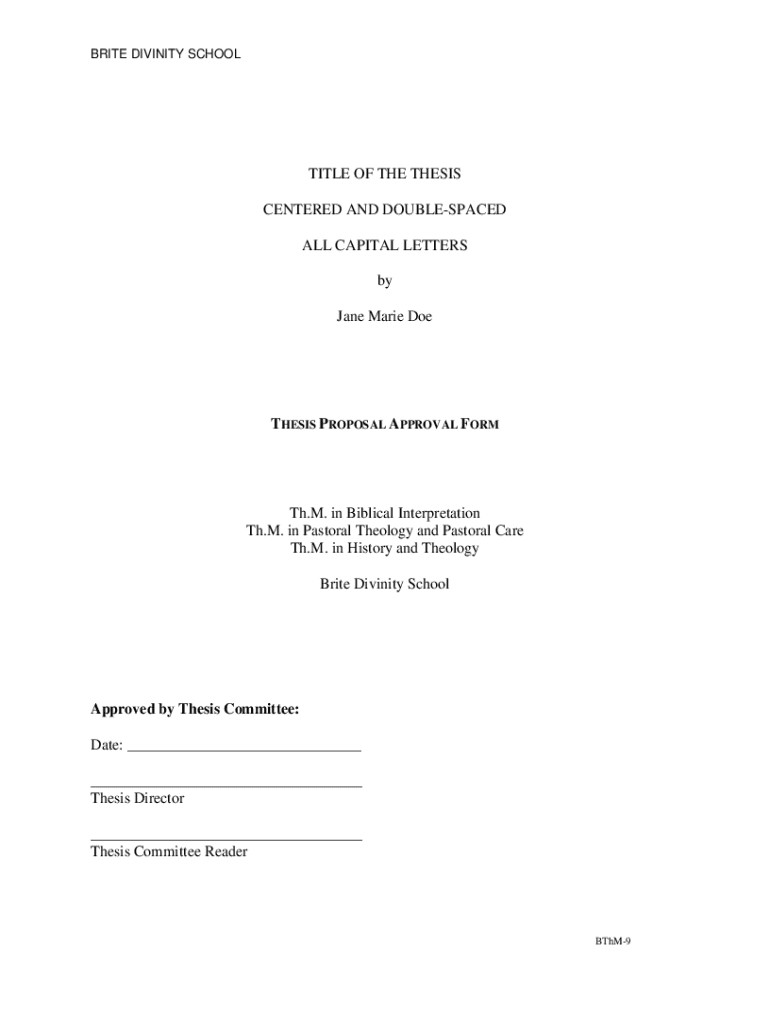 WRITE DIVINITY SCHOOLGIRL OF THE THESIS CENTERED AND DOUBLE-SPACED ALL CAPITAL LETTERS by Jane Marie Synthesis PROPOSAL APPROVAL Forth. M. in Biblical Interpretation The. M. in Pastoral Theology and