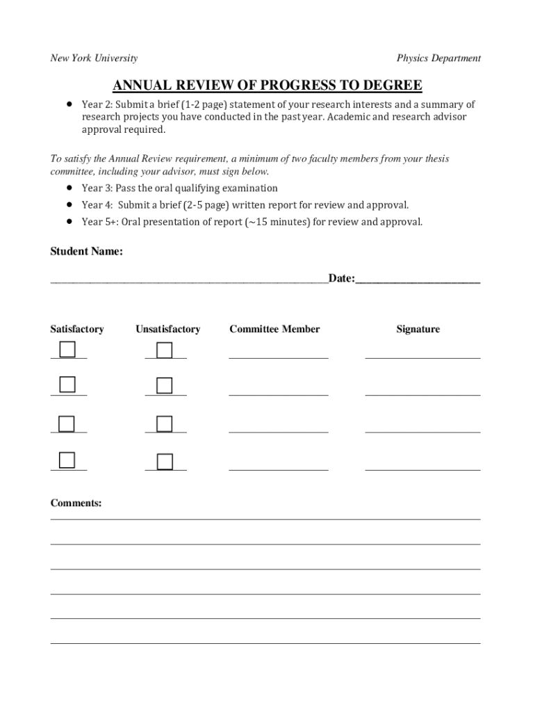 New York UniversityPhysics DepartmentANNUAL REVIEW OF PROGRESS TO DEGREE Year 2: Submit a brief (12 page) statement of your research interests and a summary of research projects you have conducted