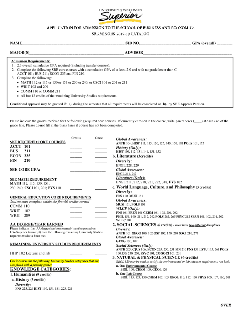 NAME SID NO. GPA (overall) MAJOR(S) ADVISOR Admission Requirements: 1. 2.3 overall cumulative GPA required (including transfer courses). 2. Complete the following BE core courses with a cumulative
