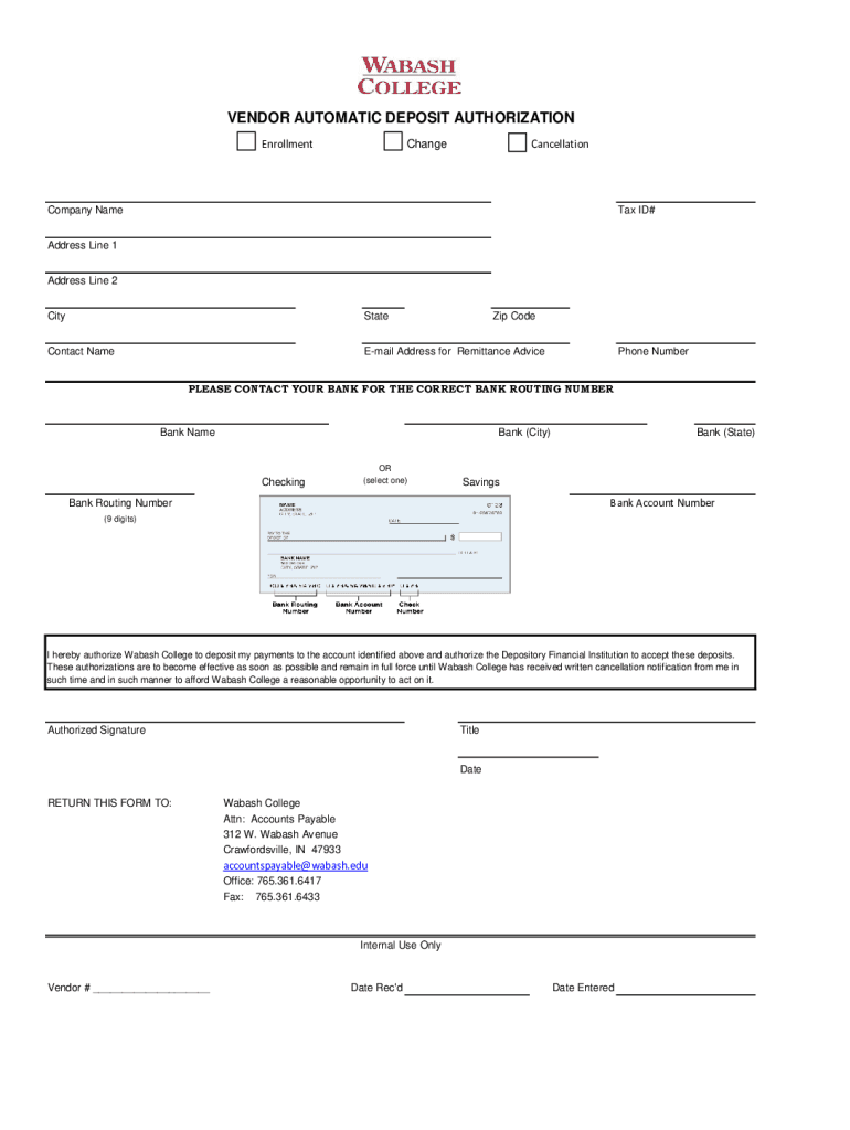 VENDOR AUTOMATIC DEPOSIT AUTHORIZATION