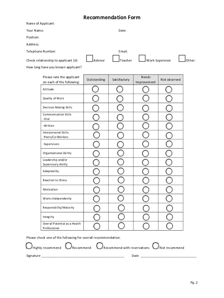 Thank you for taking the time to complete this recommendation form. Your frank appraisal of the