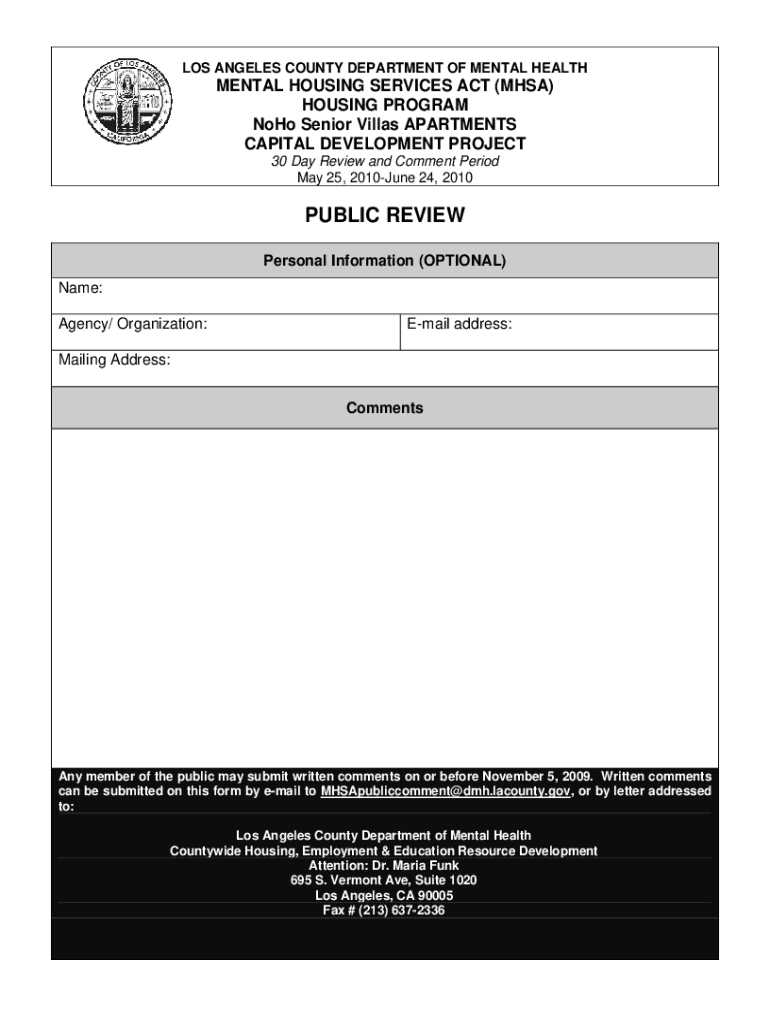Get the free NoHo public comment form.doc - file lacounty