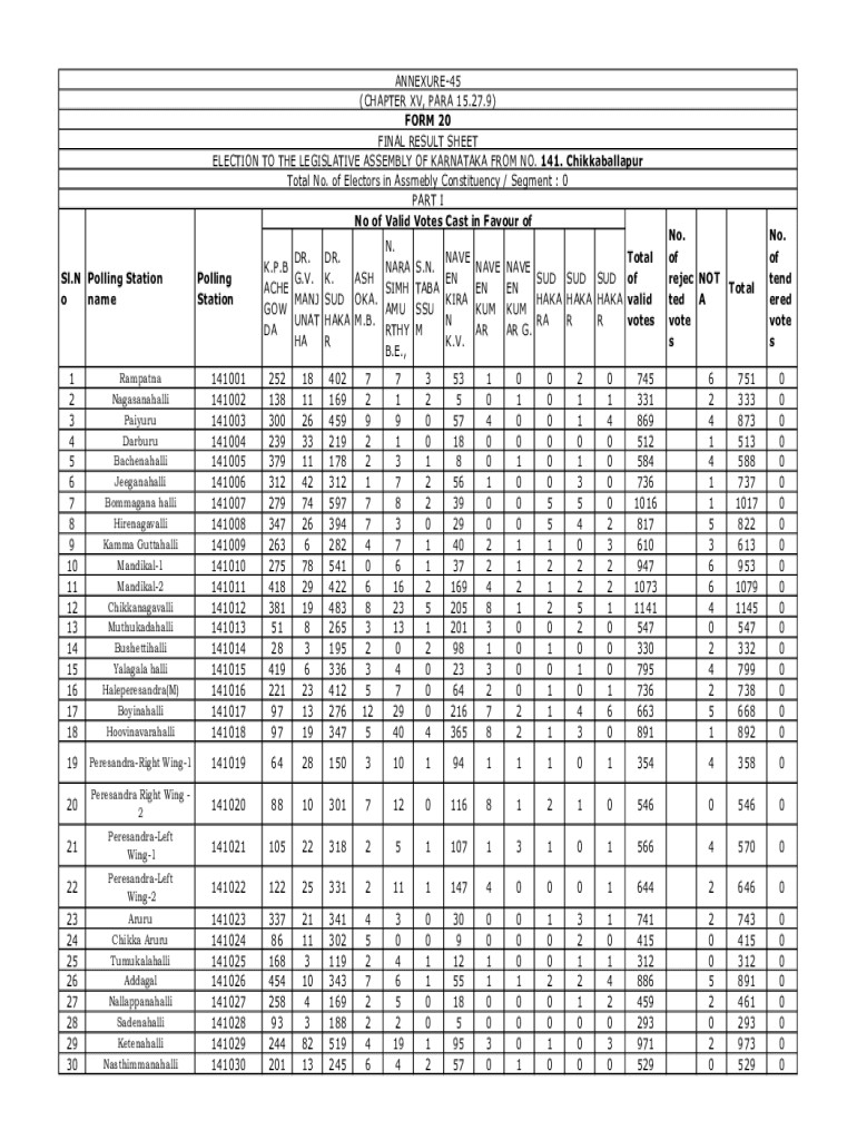 ELECTION TO THE LEGISLATIVE ASSEMBLY OF KARNATAKA FROM NO. 141. Chikkaballapur