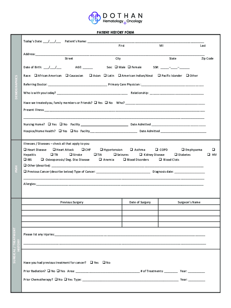 Typically, patients seeking medical care or entry into a healthcare program are required to complete and file the patient history form.