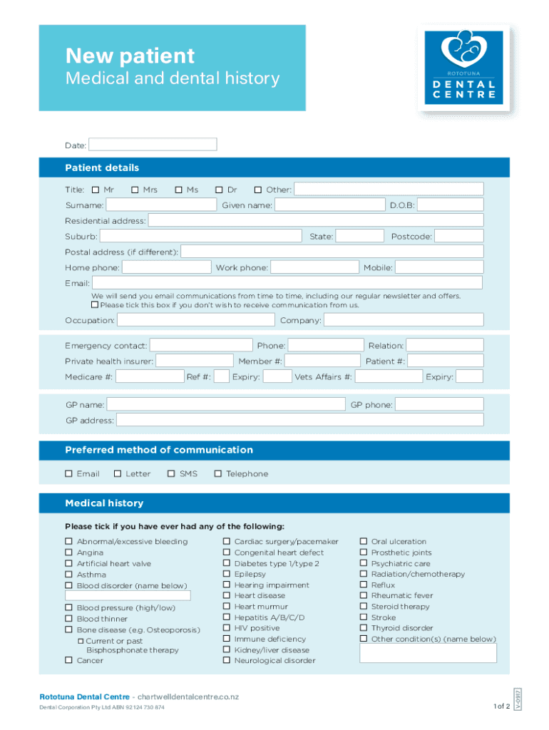 New patient - Chartwell refers to the process and documentation required when registering a new patient at Chartwell, a healthcare provider. This typically includes gathering necessary patient information and health history.