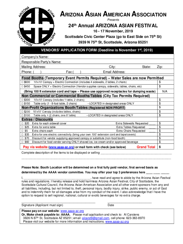 ARIZONA ASIAN AMERICAN ASSOCIATION Presents24th Annual ARIZONA ASIAN FESTIVAL 16 17 November 2019 Scottsdale Civic Center Plaza (go to East Side on 75th St) 3939 N 75th St, Scottsdale, Arizona 85251