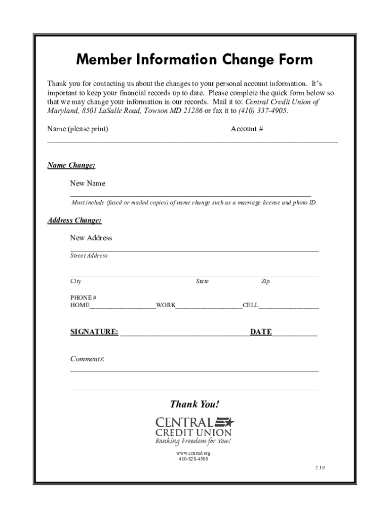 Member Information Change Form Thank you for contacting us about the changes to your personal account information. It's important to keep your financial records up to date. Please complete the quick