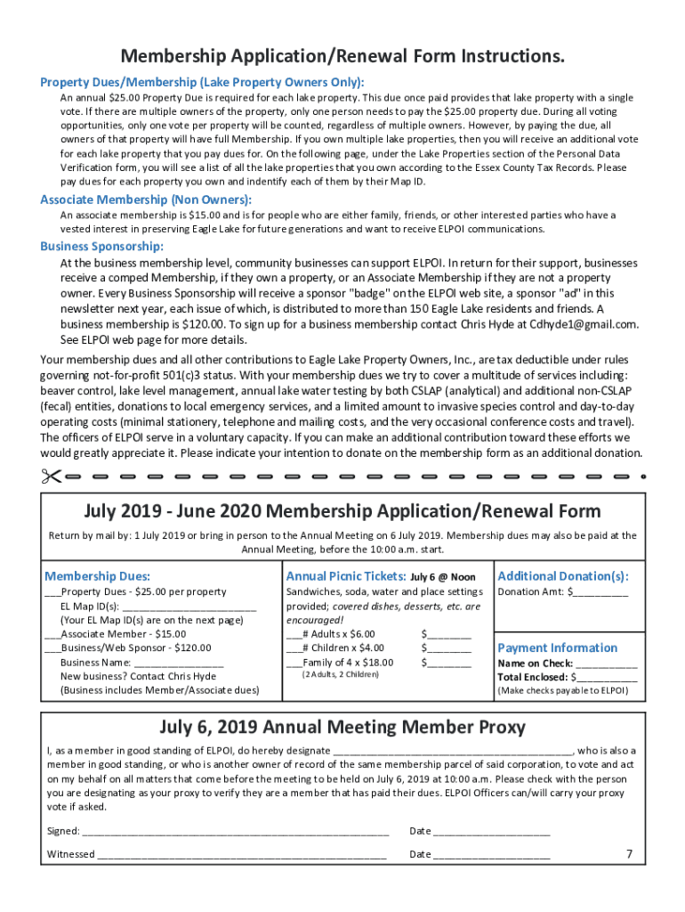 An annual $25.00 Property Due is required for each lake property. This due once paid provides