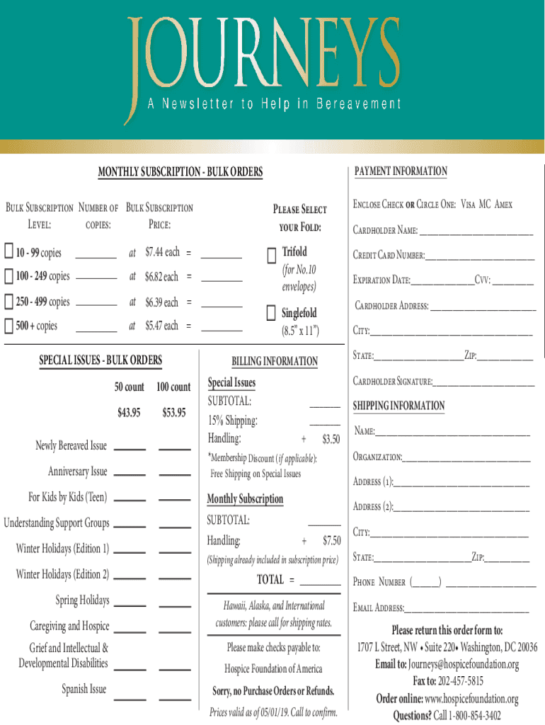 Get the free BULK ORDERS PAYMENT INFORMATION - Hospice Foundation Of America