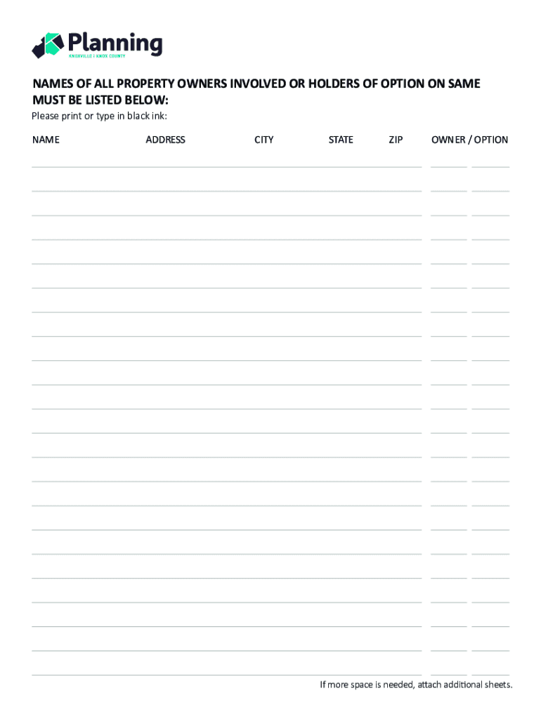 NAMEADDRESSCITYSTATEZIPOWNER / Option more space is needed, each additional