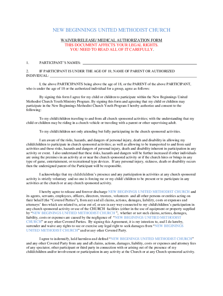 WAIVER/RELEASE/ MEDICAL AUTHORIZATION FORM