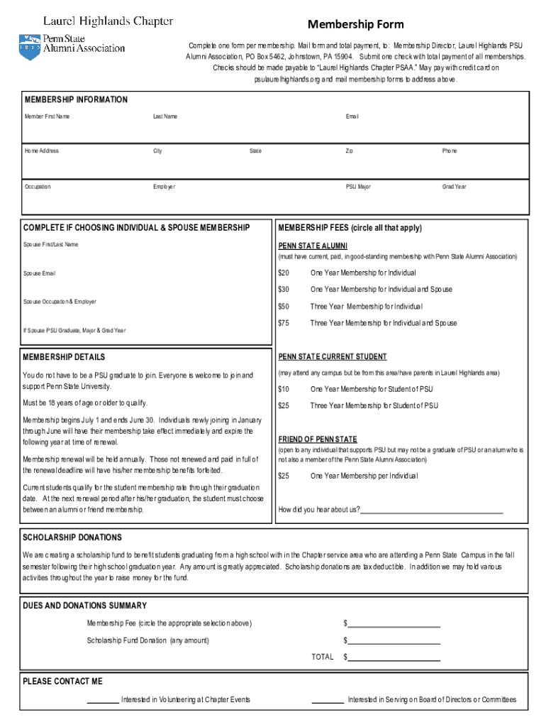 Get the free Membership Form - Laurel Highlands Chapter of the PSAA
