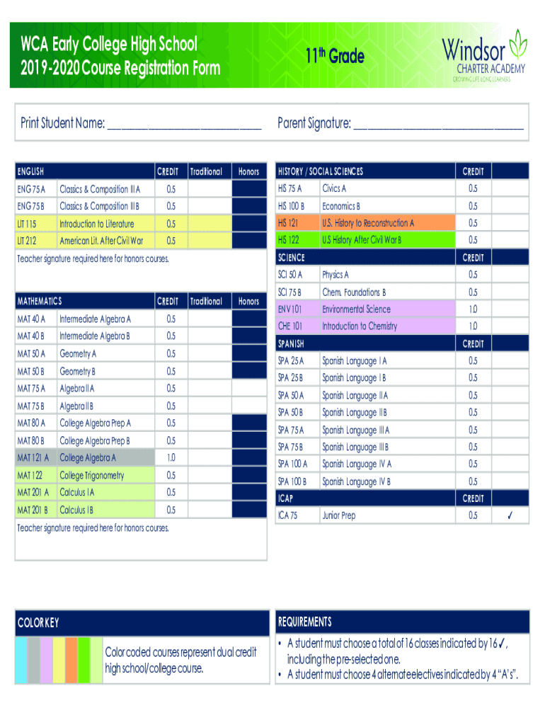 Get the free 11th Grade 2019-20 Course Selection Forms