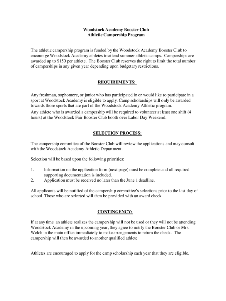 Athletic Camper ship Program athletic camper ship program is funded by the Woodstock Academy Booster Club to