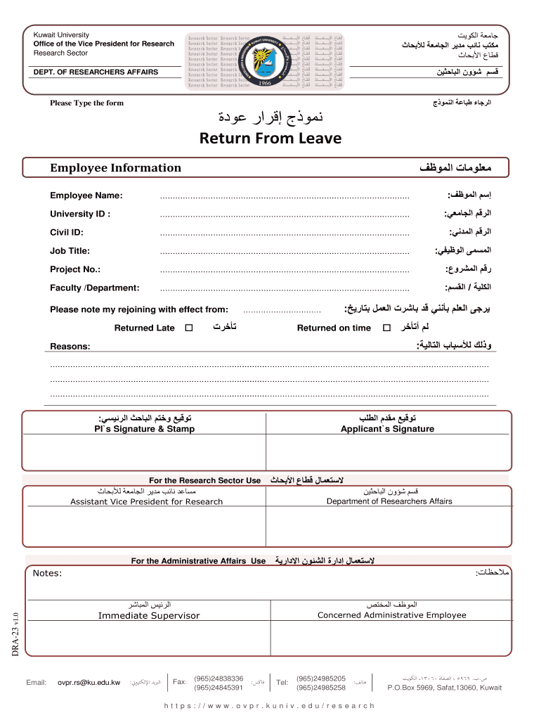 Purpose and Benefits of the Kuwait University Return From Leave Form