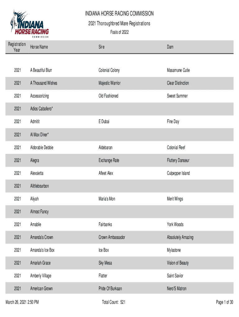 2021 Thoroughbred Mare Registrations