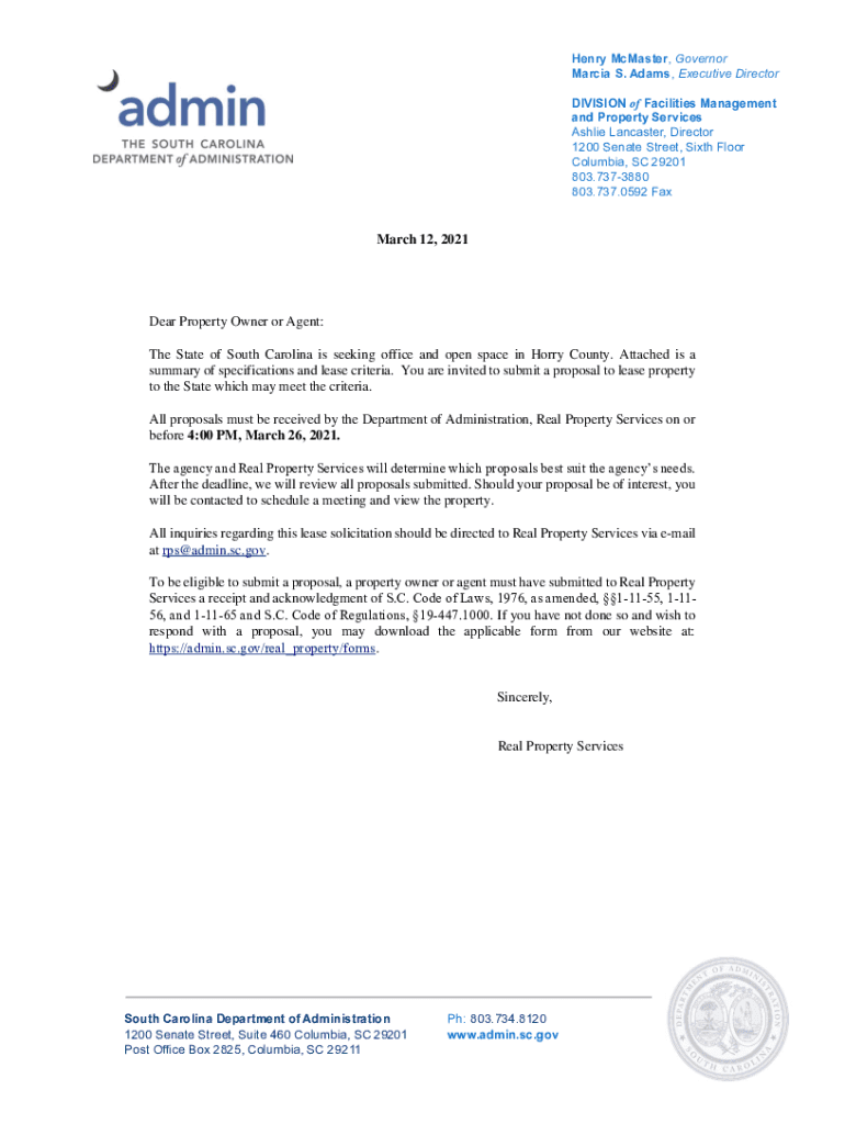 Get the free SC DHEC Seeking Office and Open Space in Horry County