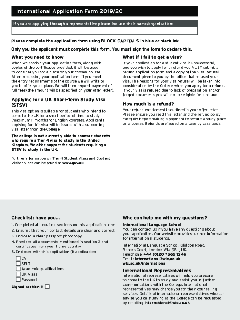 If you are applying through a representative please include their name/organization:Please complete the application form using BLOCK CAPITALS in blue or black