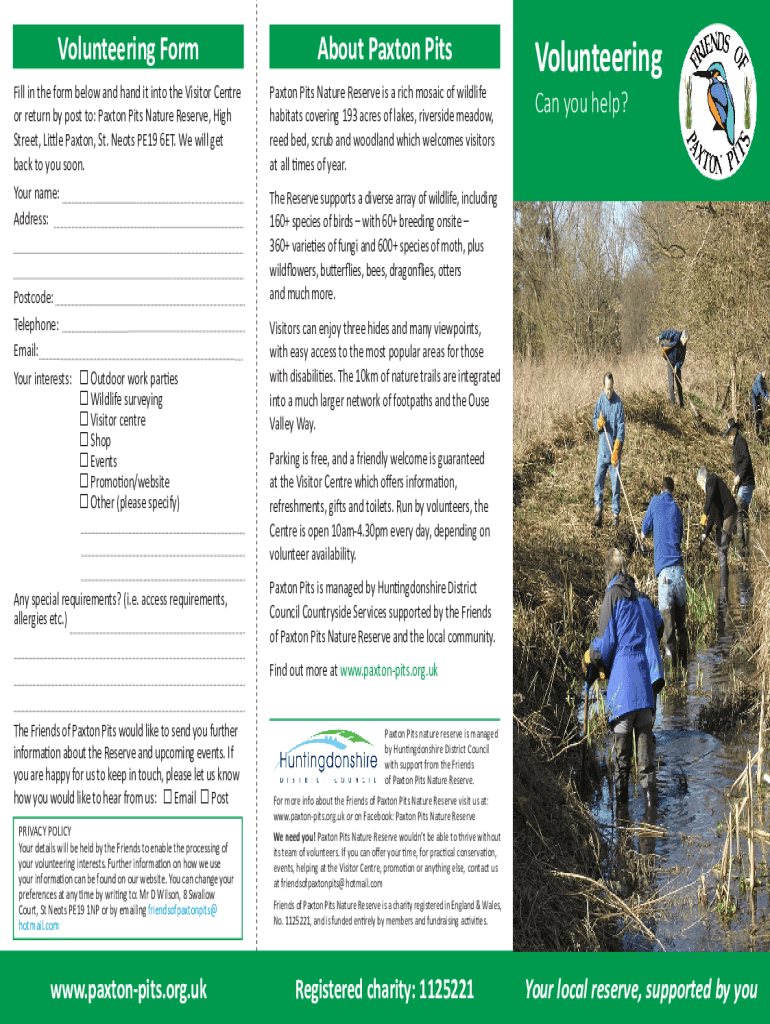 Volunteering Format Paxton Pitfall in the form below and hand it into the Visitor Center