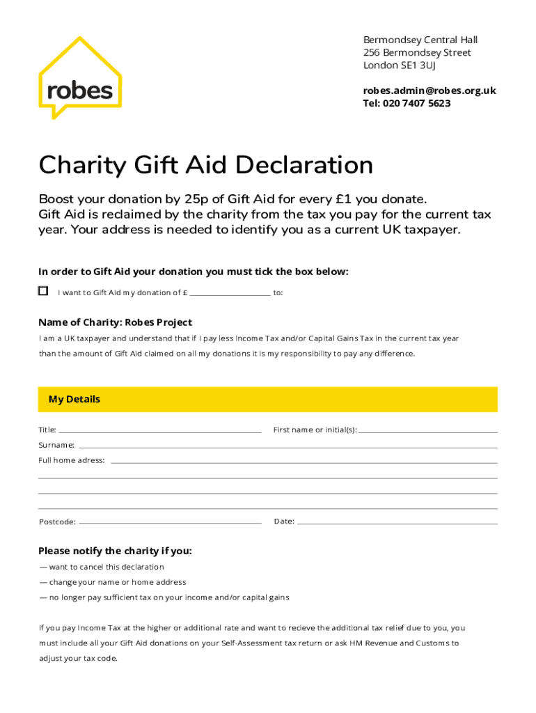 Tel: 020 7407 5623Charity Gift Aid Declaration