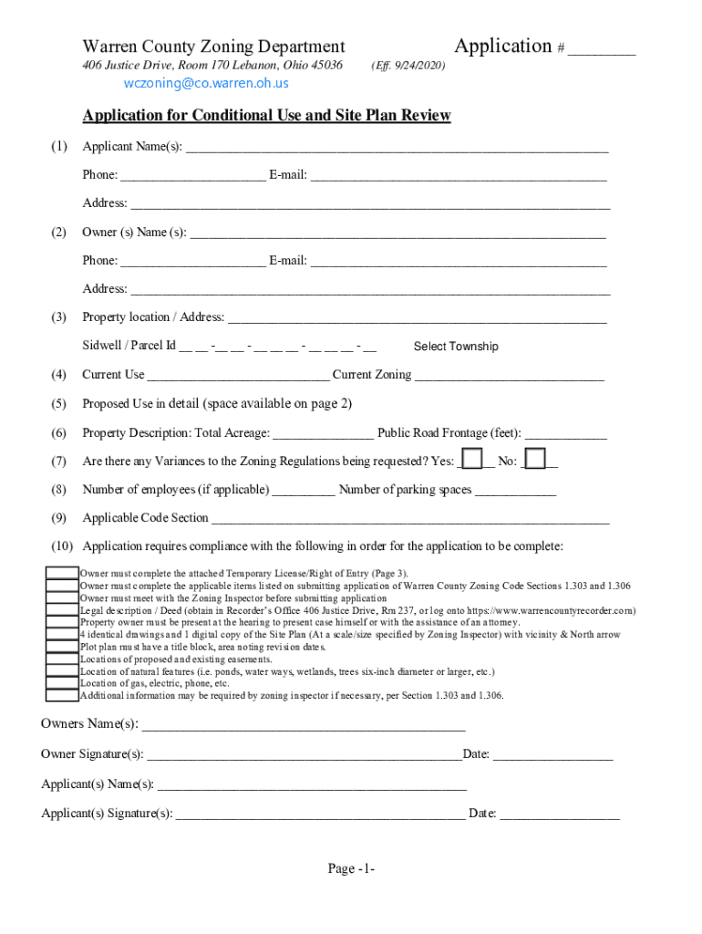 Application # Warren County Zoning Department 406 Justice Drive, Room 170 Lebanon, Ohio 45036(Eff. 9/24/2020)cloning co.warren.oh.application for Conditional Use and Site Plan Review (1)Applicant