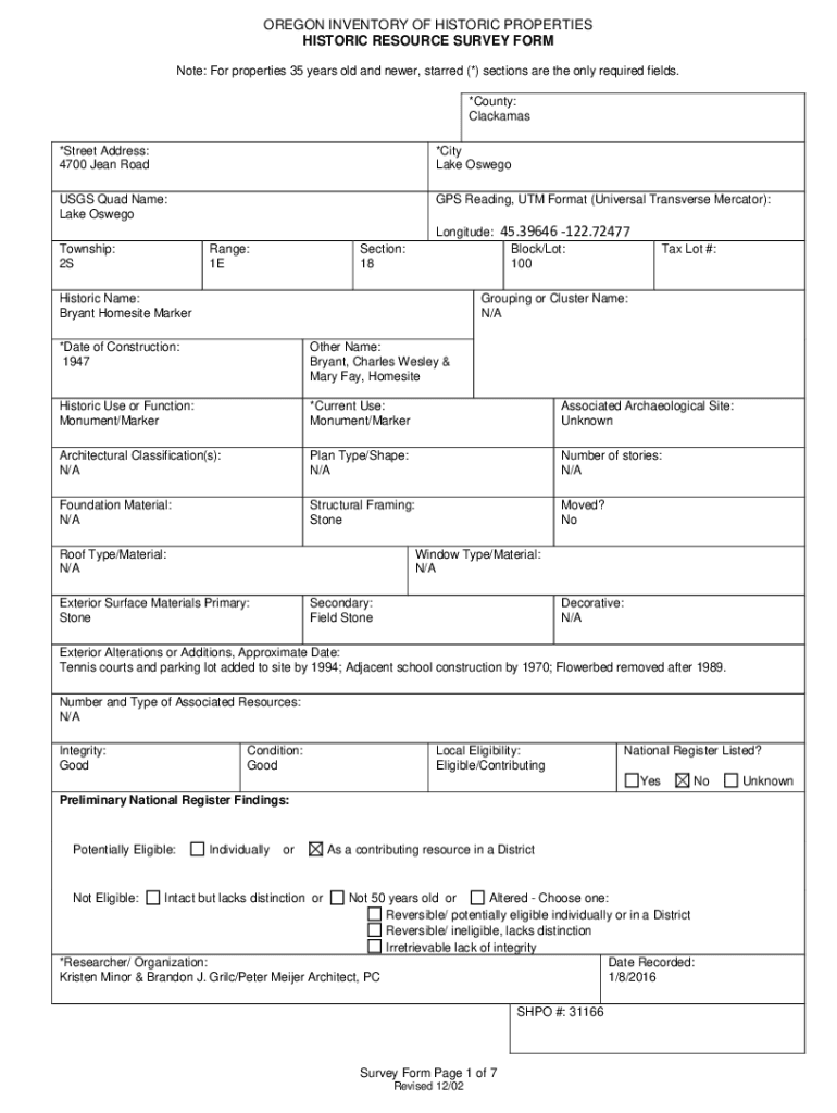 HISTORIC RESOURCE SURVEY FORM