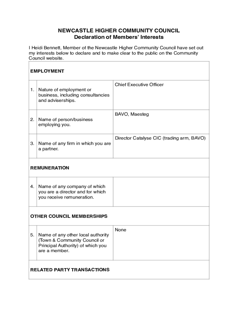 Get the free NHCC Declaration of Members interest form