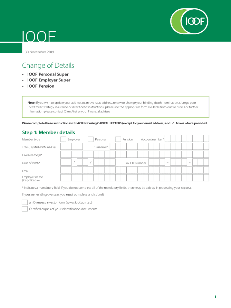 Submit the completed form to the appropriate IOOF Employer Super office or as instructed.
