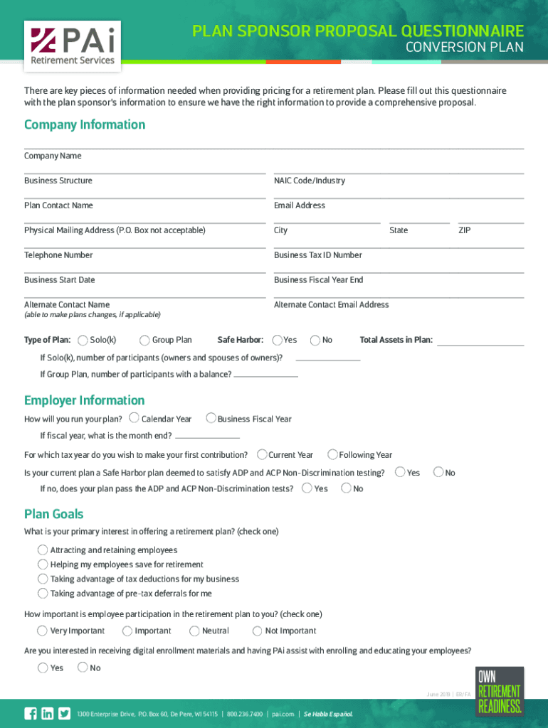 PLAN SPONSOR PROPOSAL QUESTIONNAIRE
