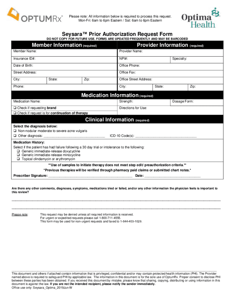 Mon Fri: 6am to 6pm Eastern / Sat: 6am to 6pm EasternSeysara Prior Authorization Request Form