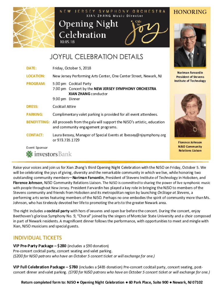 DATE:Friday, October 5, 2018LOCATION:New Jersey Performing Arts Center, One Center Street, Newark, PROGRAM:5:30 pm Cocktail Party