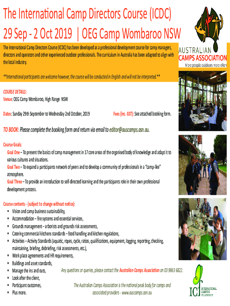Get the free The International Camp Directors Course (ICDC) 29 Sep - 2 Oct ...