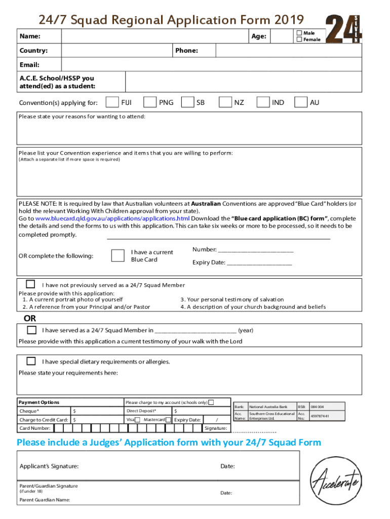 24/7 Squad Application Information Regional Student Conventions 2019 Southern Cross Educational Enterprises is seeking applications from A.C.E. Graduates and supporters to join the 2017 Regional Convention
