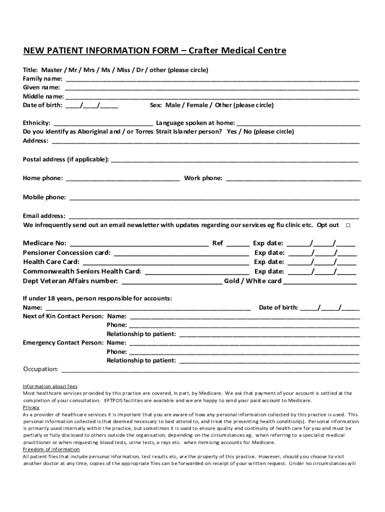 Get the free NEW PATIENT INFORMATION FORM Crafter Medical Centre