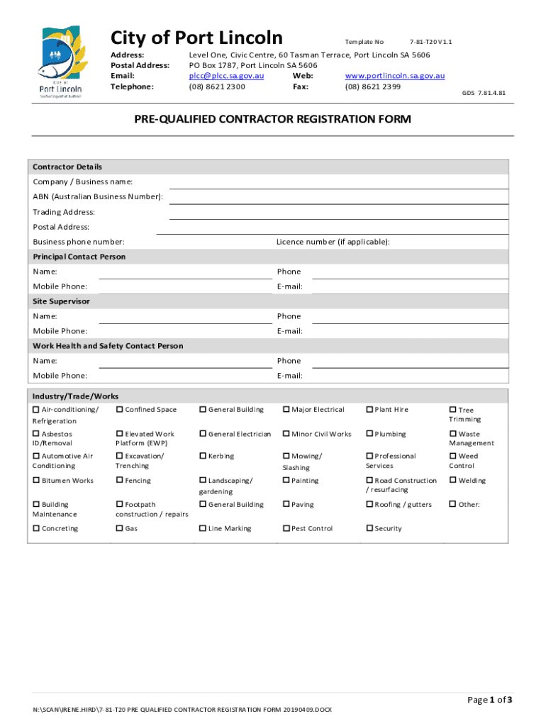 Telephone:Template No781T20 V1.1Level One, Civic Center, 60 Tasman Terrace, Port Lincoln SA 5606