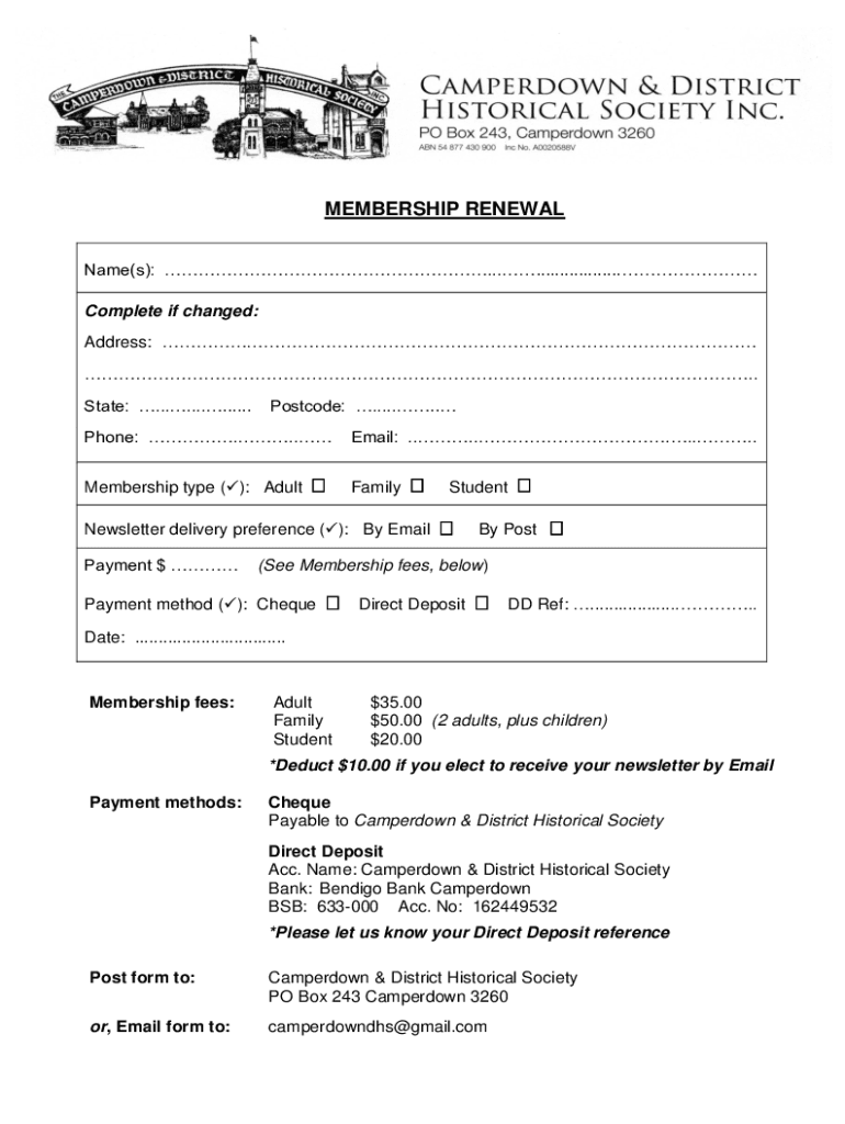 Get the free PDF Membership Renewal Form - Camperdown Historical ...