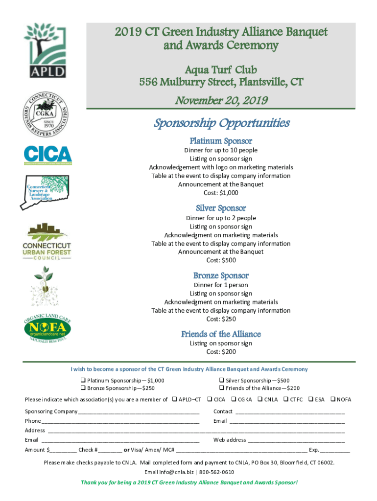 556 Mulberry Street, Grantsville, CT November 20, 2019Sponsorship Opportunities
