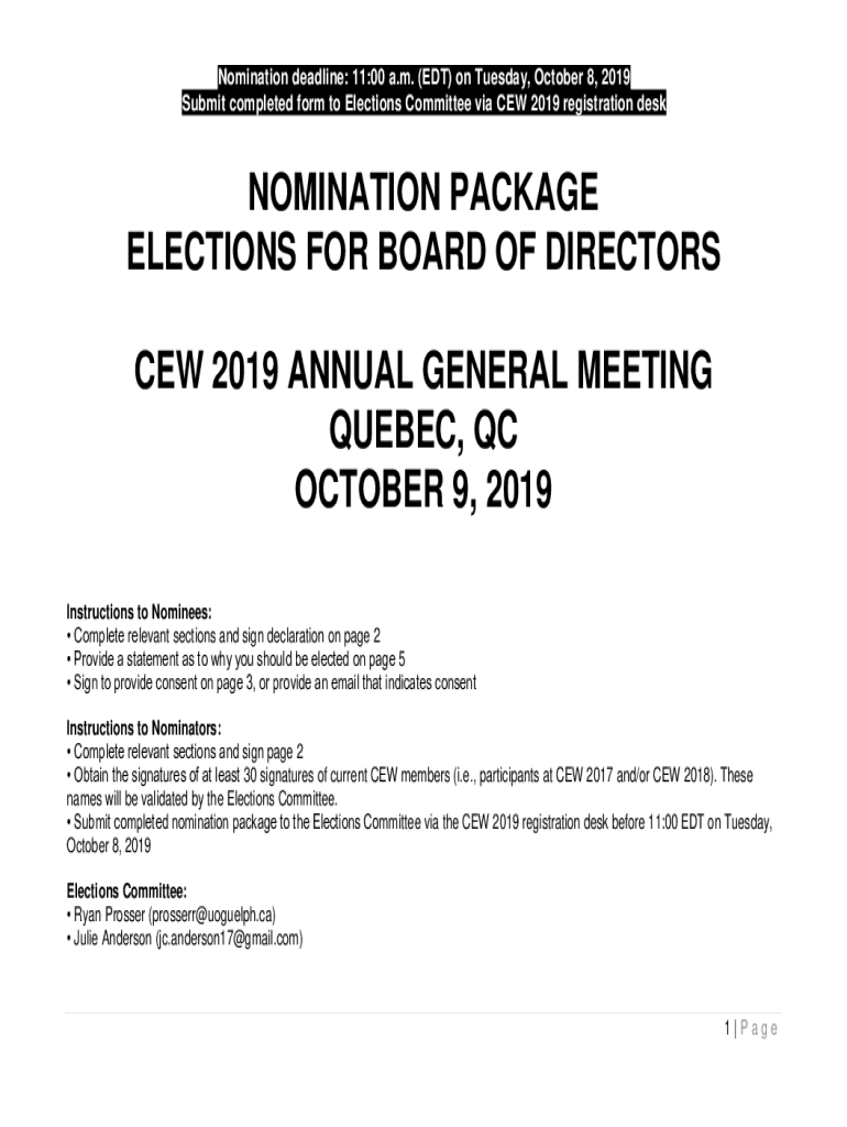 Get the free NOMINATION PACKAGE ELECTIONS FOR BOARD OF ... - ecotoxcan.ca