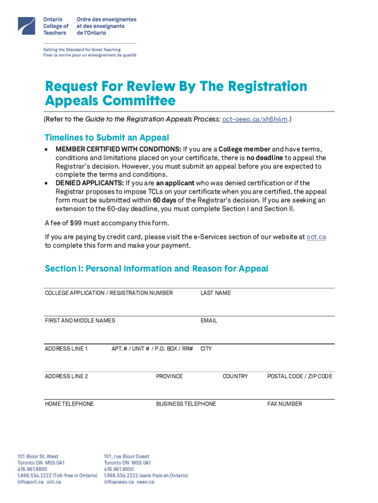 (Refer to the Guide to the Registration Appeals Process: octoeeo.ca/xh6h4m.) Timelines to Submit an Appeal