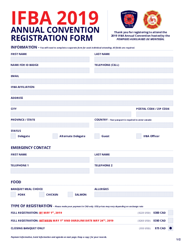 IFA 2019 ANNUAL CONVENTIONThank you for registering to attend the 2019 IFA Annual Convention hosted by the POMP IERS AUXILIARIES DE MONTRALREGISTRATION FORMINFORMATION You will need to complete a